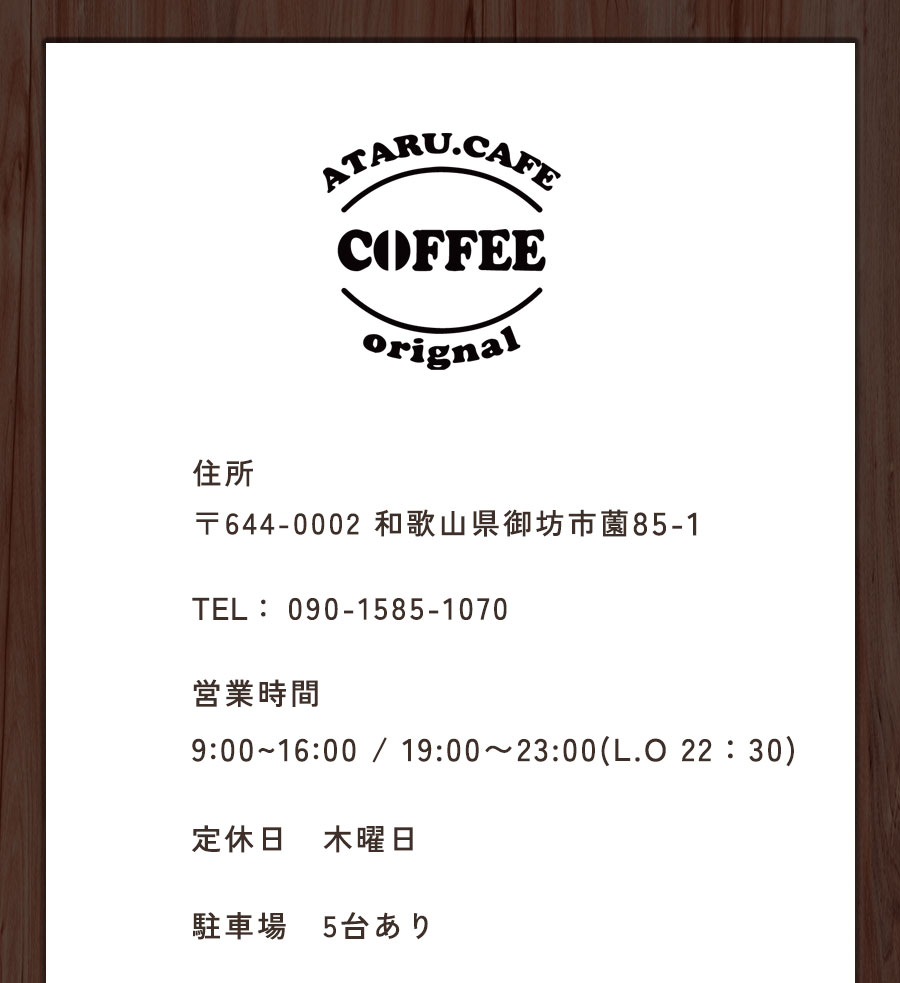 紀州鉄道 紀伊御坊駅より徒歩5分 カフェ「ATARU.CAFE」アタルカフェ